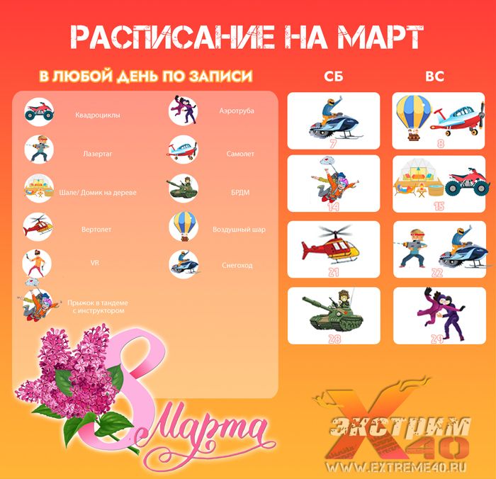 Расписание развлечений на МАРТ!